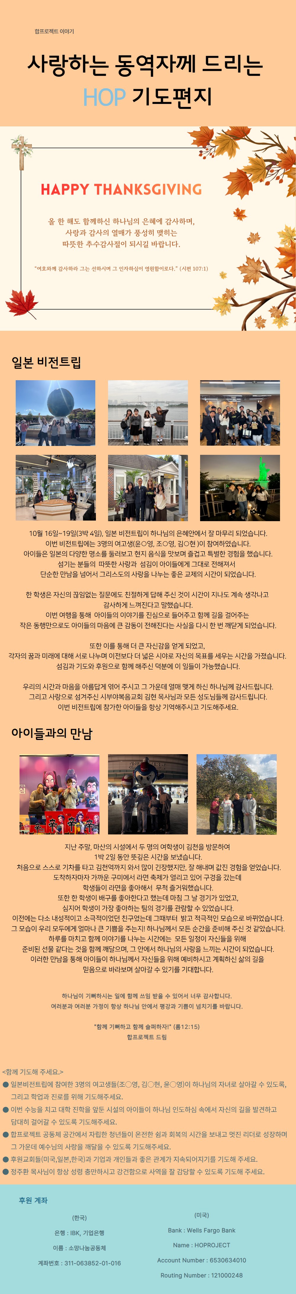 (한국) 소망 공동체 선교소식 Publish on November 14,2025 | 복된교회